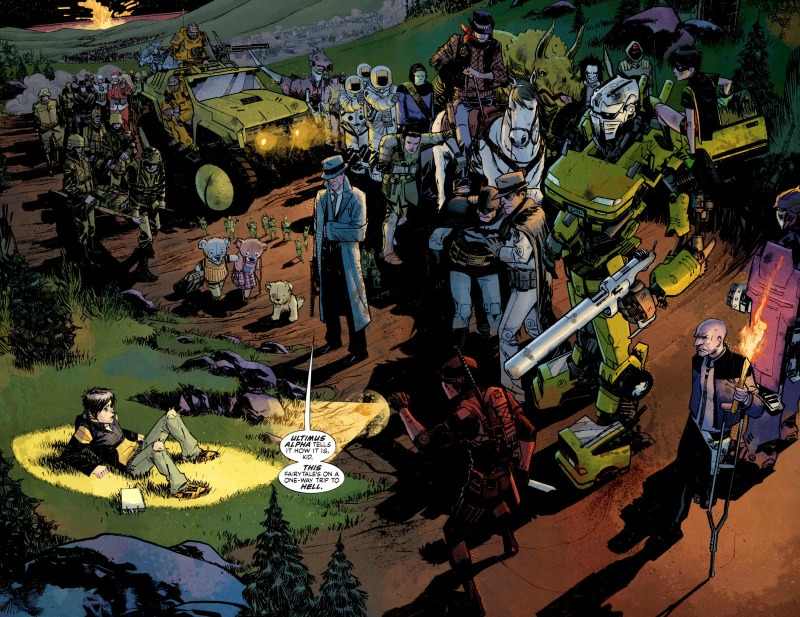 A estas alturas, hablar de Grant Morrison parece hasta algo trivial, ya que poco más podemos decir del genio inglés que no hayamos dicho ya. Para muchos está considerado como uno de los mejores guionistas de cómics de nuestro tiempo y no seré yo quien les quite la razón. Su trayectoria profesional le avala y aquí construye una fábula deliciosa, triste en algunos momentos, pero llena de diálogos maravillosos y situaciones sorprendentes muy bien planteadas que se aleja bastante de otras obras suyas de corte más «lisérgico», a pesar de contener también esos pequeños momentos de desconcierto para el lector que son marca de la casa.