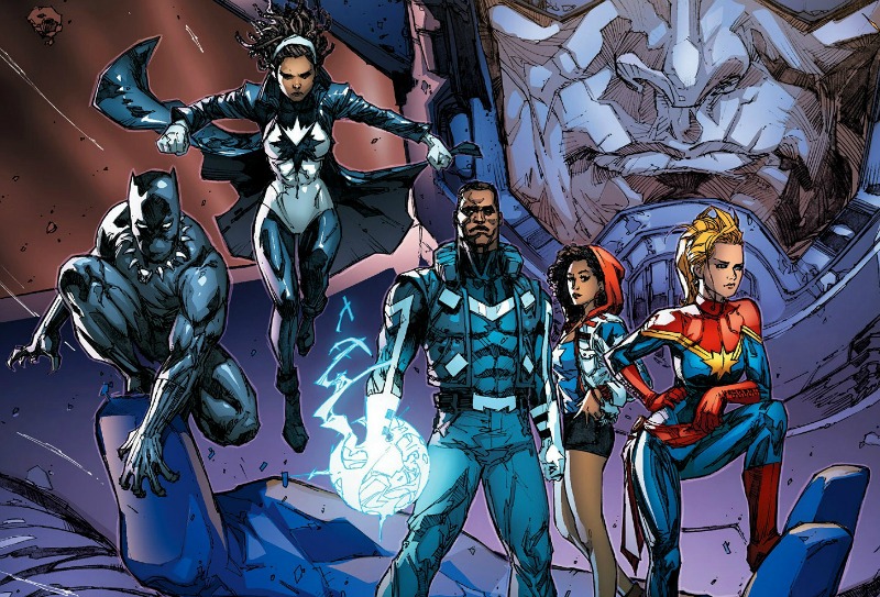 El nuevo equipo, liderado por Pantera Negra (o al menos ejerce de líder de facto, ya que, como veremos en su propia serie regular, los asuntos de Wakanda lo van a tener muy ocupado) tiene además entre sus filas a La Capitana Marvel, Maravilla Azul (Adam Brashear), Spectrum (Monica Rambeau) y América Chávez, que ofrece el contrapunto juvenil y desenfadado frente al resto de componentes del grupo que tienen ya muchas batallas a sus espaldas. Guionizada por el ya conocido Al Ewing (Poderosos Vengadores, colección de la que «rescata» a Rambeau y Brashear), dibujado por Kenneth Rocafort y con color de Dan Brown, la serie parte de una premisa muy loca (quizá incluso un pelín disparatada) pero muy interesante: Invertir la esencia cósmica del mismísimo Galactus, uno de los seres más poderosos del universo.