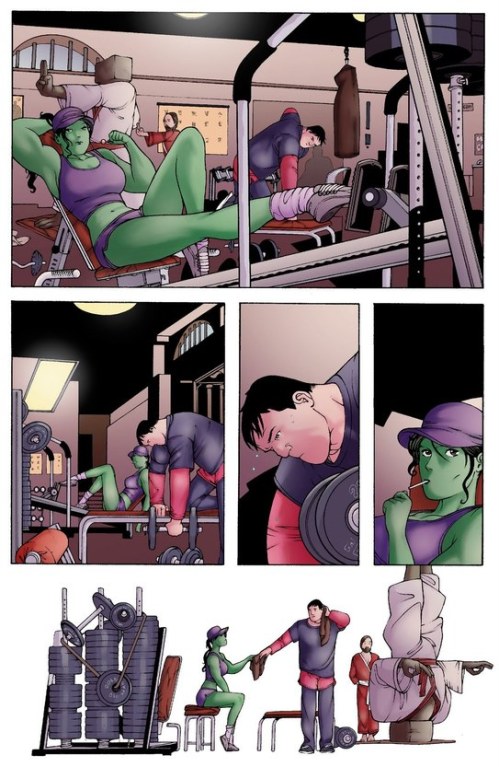 Los guiños a la mejor etapa del personaje están aquí, con múltiples referencias a los cómics de Byrne (hay algunas páginas en las que se evoca claramente a la que, en mi opinión, es la mejor etapa de Hulka) y veremos cómo también adquieren protagonismo secundarios como Zurda (con quien forma una curiosa pareja cómica), Doc Samson, Hércules (impagables los momentos en los que aparece el Príncipe del Poder), el coronel Jameson o el bonachón de Augustus Pugliese, con los que la protagonista mantiene siempre una curiosa relación que da lugar a divertidas situaciones. La historias que aquí encontraremos, nos muestran como Jennifer Walters va superando dificultades y afianzando amistades; al tiempo que recupera su estatus como vengadora tras una época algo difícil para ella. Slott, consciente de el potencial que hay en el personaje al respecto, saca aquí el máximo rendimiento posible.