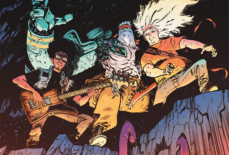 Jake no da crédito a lo sucedido y le pide explicaciones a este misterioso ser que afirma venir como representante de «The Heavy» para salvar al mundo de la amenaza del terrorífico Magnum Khaos y sus huestes, una criatura de otra dimensión que es algo así como el mal encarnado. Pero para ello necesita su ayuda. Sólo uniendo fuerzas podrán llevar a cabo esta importante misión. Daniel Warren Johnson está fantástico tanto al guion como al dibujo (y además realizando también la rotulación) y vuelve a confiar en Mike Spicer (que ya trabajó con él en Extremity) para el color de esta prometedora serie cuyo primer número me ha dejado muy buen sabor de boca y que es un must-read para los amantes de la música Rock.