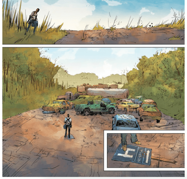 En cuanto al dibujo, decir que el ágil trazo de Alejandro Aragon es perfecto para una obra de estas características en la que los personajes son muy importantes pero también lo es el entorno. El diseño de escenarios destruidos, carreteras abandonadas, ciudades asoladas y otros paisajes es realmente acertado. Con su personal estilo, Aragon nos introduce enseguida en una atmósfera decadente, donde el peligro parece latente en todo momento. El llamativo uso del color de Wordie es lo que acaba de dotar al resultado final de un apartado gráfico muy atractivo. Con dos números publicados en Estados Unidos en el momento de escribir este avance (el próximo día 25 de este mismo mes tendremos ya la tercera entrega publicada), da la impresión de que estamos ante una miniserie que promete mucho y que va a hacer las delicias de los amantes del género. Seguiremos pendientes de lo que suceda en el mundo de Resonant para contaros cómo transcurren estos misterioso sucesos y la lucha por la supervivencia de esta familia.