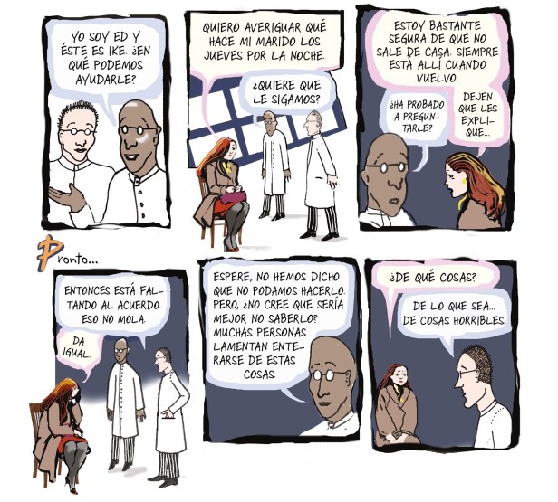 La gestación de este «Amores Extraños», publicado hace tan solo unos días por Astiberri en su magnífica Colección Sillón Orejero, contiene trece historias (la mayoría bastante desconcertantes, la verdad sea dicha) se remonta a cuando el periódico inglés The Guardian les propuso colaborar en la sección «Los novelistas hacen cómics» y ellos entregaron la historieta «Jueves, de seis a ocho de la tarde» en la que ambos retratan un dantesco romance en la época actual en el cual un tipo le pone una única (pero peculiar) condición a su novia para poder casarse con ella y vivir juntos. Tras este, llegó el relato «Sevilla se aleja», convertido posteriormente en un cómic por el matrimonio. Así se dieron cuenta de que podían seguir ampliando esta línea de trabajo y arriesgarse a realizar juntos más historias que al final resultaron terriblemente placenteras tanto para ellos como para el lector que decida acercarse a ellas.