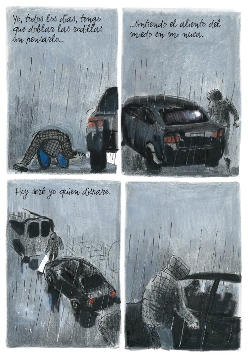 Los artífices de este cómic, de manera arriesgada y valiente, usan el terrorismo como telón de fondo para presentarnos una historia triste y angustiosa por momentos, enmarcada en los últimos años de actividad de ETA; banda armada ya disuelta, que por aquel entonces tenía amenazados a algunos políticos. Estos, evidentemente, necesitaban a los escoltas privados que les proporcionaba el Ministerio del Interior. El guionista Mark Bellido relata aquí su propia experiencia como uno de esos escoltas que protegían la vida de un alcalde en Pamplona durante cuatro años. Según el propio Bellido: – «Allí no solo perdí mi libertad sino que perdí hasta mi nombre..». Esta frase, resume bastante bien la angustia que transmite esta obra.