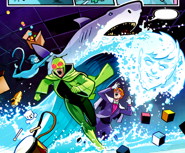 En cuanto al apartado gráfico, el dibujo de Stephen Byrne le va como anillo al dedo a estos personajes y a la trama, sobre todo a la hora de representar las andanzas de secundarios tan hilarantes como El Conde Borráchula, La Liga de la Molestia (detrás de la cual está un importante villano del Universo DC) o el criminal conocido como El Revolvedor. El dibujante posee un estilo muy vistoso y cercano al cartoon que, unido al buen hacer del guionista, hace a un cómic de estas características muy atractivo a nivel visual. Además, hay que resaltar que Byrne realiza un excelente trabajo al color en este primer tomo que cuenta además con el también metamórfico Gar Logan (Changeling, ilustre miembro de Los Nuevos Titanes) como invitado especial. Destacables también son los pocos momentos en los que interviene el sin par Gleek, al cual se le coge cariño desde el minuto uno y que firmemente creo que es un personaje que nos va dar grandes momentos con sus locuras y sus excentricidades. En definitiva, un cómic muy divertido que en su primer volumen editado aquí incluye los tres primeros números de estos personajes queridos por muchos fans de la serie original (The All-New Superfriends Hour) y que si eres seguidor incondicional del trabajo de Mark Russell no te puedes perder.