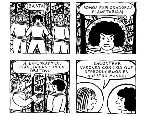 El punto fuerte de Campbell como artista está en la narrativa. Su trazo, podría parecer básico e infantil en primera instancia pero lo que nos cuenta con él y, sobre todo, cómo lo cuenta; no podría ser más maduro y acertado. Y además, de un modo efectivo, logra utilizar la comedia y el surrealismo para dejarnos una hilarante trama de ciencia ficción no exenta de pullas hacia el machismo recalcitrante de la sociedad y en la que se utiliza a sí misma como vehículo para ello. Es decir, que la metaficción es otro de los elementos presentes en este cómic realizado en blanco y negro que cobra su importancia, aunque sin duda ese toque satírico que sobrevuela a lo largo de toda la aventura de estas chicas es sin duda lo que más poso deja al lector.