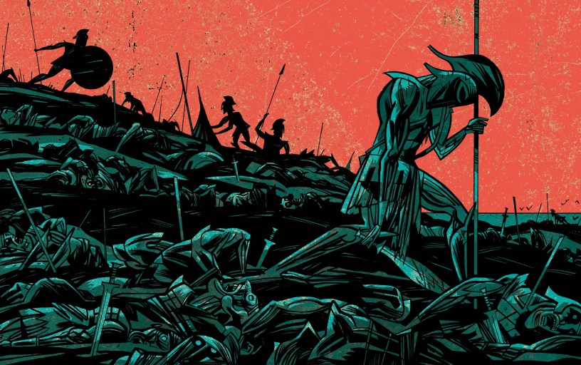 La trayectoria de dos formidables autores como son Santiago García y Javier Olivares es sobradamente conocida por muchos aficionados al cómic. El guionista madrileño, lleva más de quince años dedicado a escribir guiones para tebeos e incluso ha publicado libros y ensayos sobre el noveno arte con gran éxito de crítica. Ha trabajado con artistas de la talla de David Rubín (Beowulf), Manel Fontdevila (Tengo Hambre) o Pepo Pérez (El Vecino). Javier Olivares, nacido también en la capital de España, posee una dilatada carrera en el mundo de la historieta, es un reputado ilustrador y ha trabajado en revistas como El País Semanal o el periódico Boston Globe. Juntos, realizaron «Las Meninas» (Astiberri, 2015), una brillante deconstrucción de la figura de Diego Velázquez, y ahora nos acercan el mito de Aquiles de un modo muy peculiar.