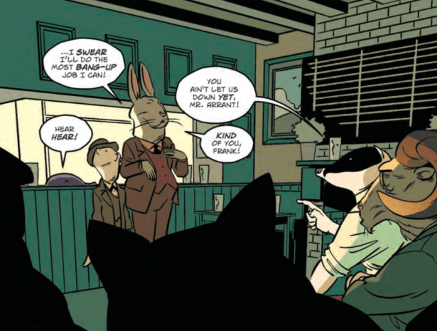 Otro aspecto a destacar de este cómic es el dibujo. Que los protagonistas sean un zorro, un perro, una gata, un cerdo o un visón, es todo una acierto, como he comentado al principio. Porque lo hace todo más maravilloso aún si cabe. ¿Un ataque alienígena a una campiña de aspecto británico en la que viven y trabajan animales antropomórficos que se muestran más humanos que los propios humanos en todo momento? Simplemente genial. Y, gracias al fenomenal dibujo y color de Ian Culbard (que quizá os suene a algunos también por ser el co-creador de la serie Dark Ages, para Dark Horse) el resultado final es verdaderamente estupendo. El artista, realiza un trabajo magnífico aquí y su llamativo y peculiar estilo, que recuerda por momentos al de algunos filmes de animación, es perfecto para este tebeo.