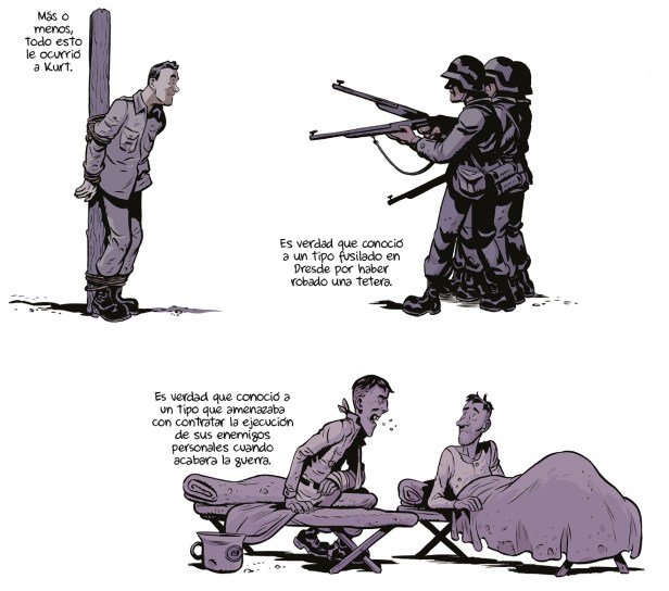La novela (que posee tintes autobiográficos) protagonizada por Billy Pilgrim (un alter ego de Vonnegut) presentaba una visión trágica de la guerra y de cómo el ser humano se enfrenta a situaciones muy complicadas derivadas de esta; fue adaptada también a la gran pantalla en los años setenta cosechando gran éxito e incluso ganando premios. Ahora, los mencionados autores (con la inestimable colaboración de Ricard Zaplana al color y de Scott Newman en la realización de la portada) nos brindan una fantástica adaptación al cómic que no tiene desperdicio alguno. Sobre todo en lo visual, ya que el despliegue artístico del barcelonés es absolutamente espectacular.