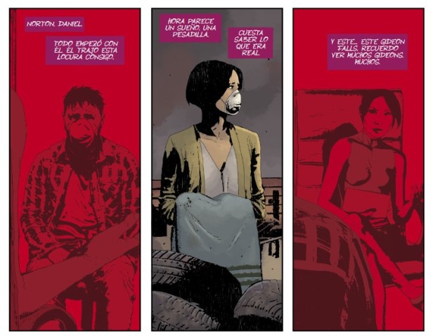 En el anterior tomo contemplamos la destrucción del famoso Granero Negro y ahora nos sumergiremos en una travesía multiversal muy compleja a través de varios de los diferentes personajes que componen el particular elenco de este cómic. Para empezar, tenemos a Angela Xu perdida en un Gideon Falls futurista distópico claramente inspirado en obras como 1984, de George Orwell. La máquina de Norton Sinclair está generando consecuencias imprevistas y ahora la inquientante figura del «hombre sonriente» está buscando un huesped permanente. Ha llegado la hora de reunir a unos nuevos labradores y lo más importante: hay que encontrar a Norton y a Fred para después intentar detener toda esta locura. Hablando de Fred, este está perdido en un Gideon Falls post-apocalíptico de ambientación ciberpunk en el que están sucediendo una serie de fenómenos extraños y en el que nuestro párroco recibirá la inesperada ayuda de una ciudadana hastiada de su vida.