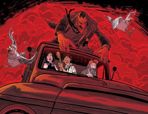 Pero la madre, a sabiendas de que este día llegaría, ha hecho sus propios planes y avisa a Elisabeth para que huya cuanto antes del lugar. Un lugar, que por cierto, no es lo que aparenta ser tampoco. Así comienza, como digo, uno de los mejores cómics que ha facturado «La Gran I» en los últimos tiempos (lo cual ya es mucho decir) y que nos presenta un thriller genial con tintes de road trip y algo de humor en el que veremos desfilar todo tipo de personajes variopintos y muy bien desarrollados entre los que destacan (además de la protagonista y el diablo trajeado, por supuesto) un sosias del gran Robert Johnson (el mítico bluesman sobre el que pesa la leyenda de un pacto con el Diablo para ser el mejor guitarrista de Blues) el cual además tiene su propia aventura que vivir dentro de la trama principal. El cómic, además de estar fabulosamente bien escrito, posee unos acertados diálogos que enganchan sobremanera al lector de principio a fin. Y además, se intuye también una crítica al patriarcado realizada de un modo muy inteligente (con sutileza y al servicio de la historia) y nos deja uno de los mejores personajes femeninos de cómics de los últimos años.